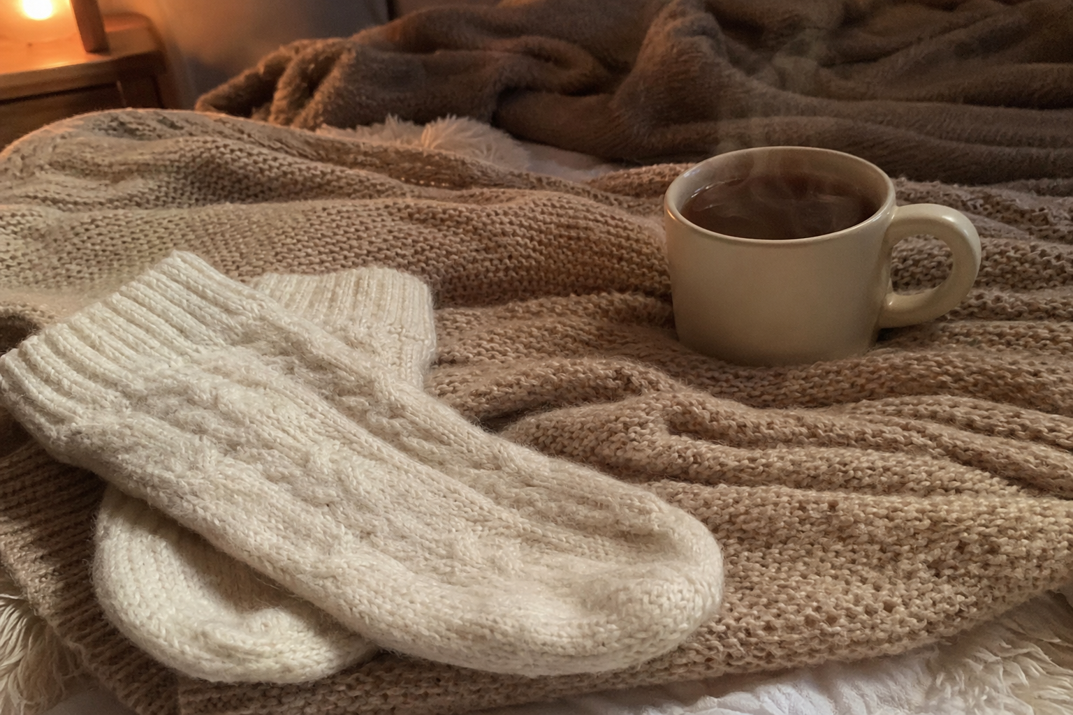 Fluffy cable-knit bed socks — long wear