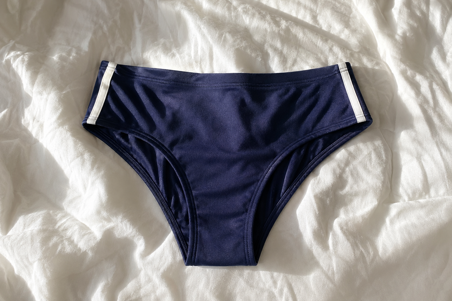 Navy sport brief, white side stripe — Amstel run